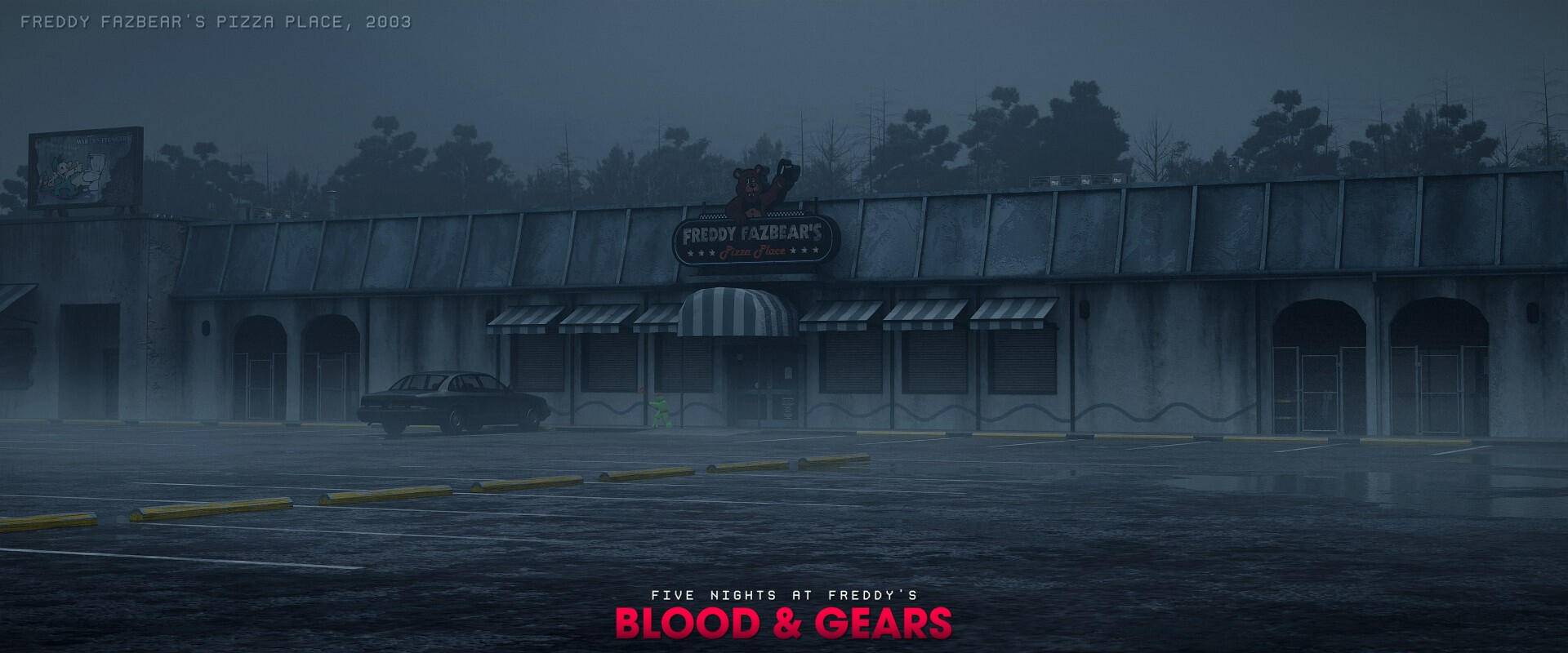 BLOOD & GEARS takes place in Colorado Springs during October 2003. Once teeming with crowds of children, Freddy Fazbear's Pizza Place is a shell of its former glory. Following a major decline in business and a disastrous break-in the previous year, the company is on its last legs.